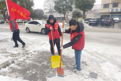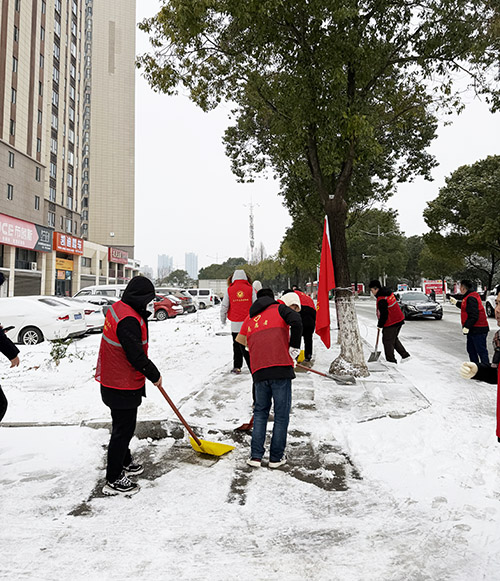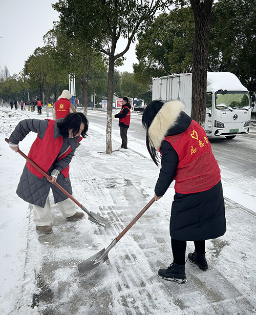 雪情就是命令。面对突发雪情,兴盛公司迅速响应市政府除雪保畅的动员令,第一时间集结干部职工组建“除雪突击队”。队员们不畏严寒、冲锋在前,成为雪天里最动人的风景线。大家身着红马甲,手持除雪工具,顶着刺骨寒风,分工协作、默契配合:有的挥舞铁锹破冰铲雪,将路面厚实的积雪与冰层逐一击碎;有的推着推雪板集中清理,将零散积雪推向道路两侧。以“分片包干、协同作战”的方式开展扫雪除冰作业。